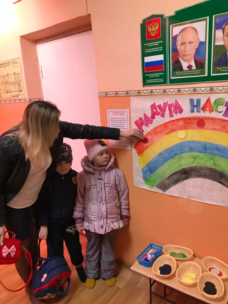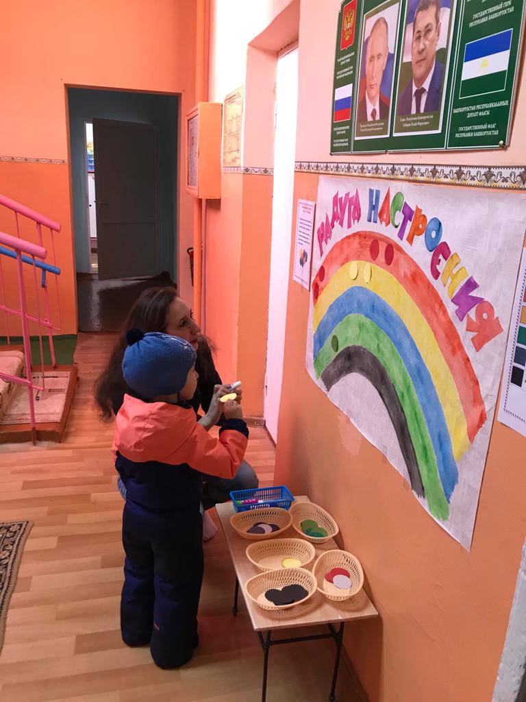Стартовала акция «Радуга настроения» для детей и родителей. Дети и взрослые оценивали, с каким настроением они пришли в детский сад, соотносили его с определенным цветом «Радуги настроения», и прикрепляли кружки на определенную полоску радуги. Детям очень понравилась акция и сам процесс выбора цвета, подходящего под их настроение.