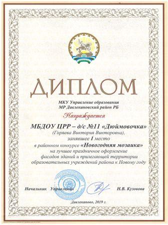 26 декабря 2019 г. было награждение участников дошкольных организаций, где нас наградили памятными подарками и дипломом первого места.